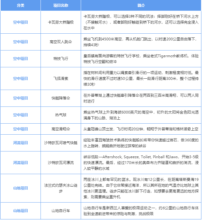 皇后鎮(zhèn)被譽(yù)為“探險(xiǎn)之都”的原因在于其得天獨(dú)厚的自然資源。南阿爾卑斯山是新西蘭最高大的山脈,巍峨高聳、峽灣眾多,是蹦極的極佳選擇。同時(shí),美麗的瓦卡蒂普湖是新西蘭第三大湖泊,由于形狀獨(dú)特有特殊的潮汐現(xiàn)象頗具特色。因此,除蹦極外,滑雪、噴射快艇和山地自行車均是“探險(xiǎn)之都”皇后鎮(zhèn)的熱點(diǎn)項(xiàng)目。