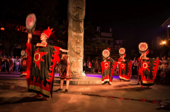 “彝鄉(xiāng)戀歌”是偉光匯通打造的一項(xiàng)以“天天長街宴、夜夜火把節(jié)”為主題的彝族原生態(tài)歌舞伴餐類旅游產(chǎn)品。通過連通的環(huán)形水上吊腳樓這一特殊用餐環(huán)境,“彝家八大碗”這一特色餐品,營造和再現(xiàn)了彝族人民擺設(shè)長街宴同族共聚、誠摯待客的餐飲文化。而在品嘗彝家美食之余,中央水榭舞臺的表演更是精彩紛呈——跳菜、敬酒歌、服飾展、猜新娘互動等等,讓游客在享受美食的同時(shí),感受原汁原味的彝族風(fēng)情。