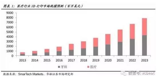 根據(jù)SmarTech《牙科3D打印2015:一個十年的機會預(yù)測與分析》中的預(yù)測,3D打印技術(shù)在牙科領(lǐng)域的市場規(guī)模到2016年會達到20億美元,2020年銷售規(guī)??缮仙?1億美元。