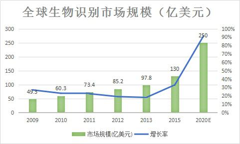 圖2 生物識別領(lǐng)域未來五年復(fù)合增長率