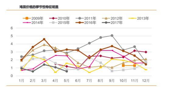 從歷史數(shù)據(jù)來(lái)看,年內(nèi)禽類產(chǎn)品價(jià)格具有季節(jié)性,年內(nèi)一般有兩輪上漲: