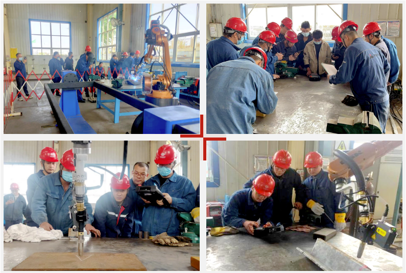 針對焊接機(jī)器人的具體操作,信息科技公司派遣專業(yè)技術(shù)人員前往現(xiàn)場開展了詳細(xì)的講解和演示。技術(shù)人員對GR-C操作系統(tǒng)、各類參數(shù)基本設(shè)置、程序編輯示例、程序管理與指令編輯、輸入輸出及PLC功能、程序加載及功能檢測、焊接編程應(yīng)用及安全操作等事項(xiàng)進(jìn)行了一一說明,切實(shí)提高了操作人員對不同應(yīng)用場景下各種編程及操作的掌握程度,同時有力保障了操作人員對整體智能焊接系統(tǒng)的操作安全,為后期焊接機(jī)器人在實(shí)際工作中的靈活應(yīng)用打下堅(jiān)實(shí)基礎(chǔ)。